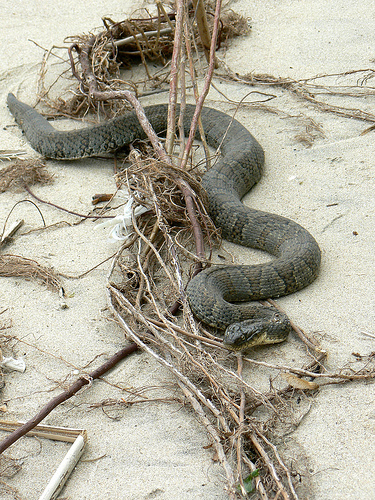 Lake Erie Water Snake Classic Lake Erie watersnake is solid grey and patternless However, they can exhibit some pattern Feeds on non-game Commonly found along rocky shoreline of islands Also frequents docks, lakeside |